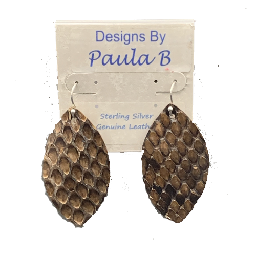 Handcrafted lightweight exotic leather earrings with sterling silver ear wires.