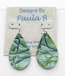 Handcrafted lightweight colorful leather earrings with sterling silver ear wires. The design on each pair will be unique but the color scheme will remain the same.