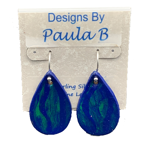 Handcrafted lightweight leather earrings with abstract design. Each pair is unique with same color scheme. Sterling silver ear wires.